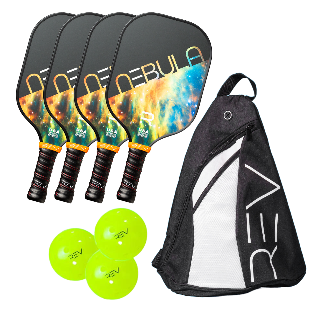 Become a pro on the pickleball court with our Beginner Starter Kit for 4! This kit includes everything you need for a game of 4 people: 4 durable paddles, a convenient bag for storage and transportation, and a set of 3 high-performing balls. Start playing like a pro today!