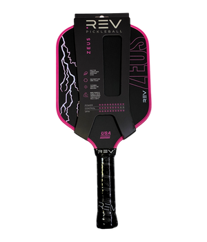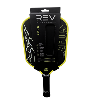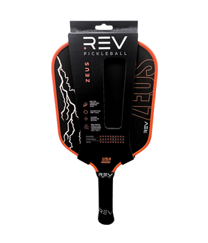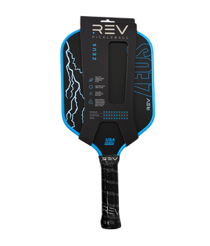 The Zeus Paddle is Rev’s most powerful paddle yet. Designed to maximize precision, spin, and power, it is the ideal choice for players who want to dominate on the court. Its hybrid shape and advanced construction make it versatile, consistent, and durable—perfect for competitive play or just leveling up your game.